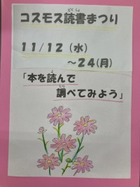 今日からコスモス読書祭りが始まりました。そこで、図書委員会による告知が、オンライ...