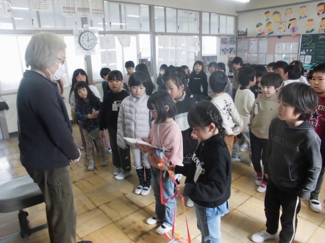 今日は、見守り隊の方に感謝を伝える会がありました。1年生からは、感謝状とメダル、...