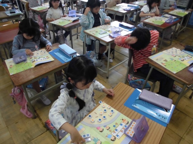 数図ブロックを使って、どちらが多いかを調べました。初めて数図ブロックを使って勉強...