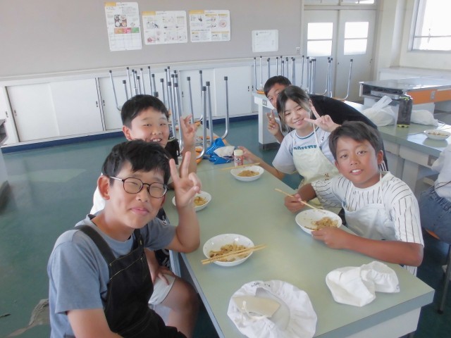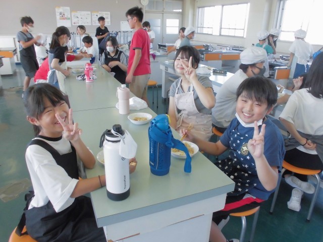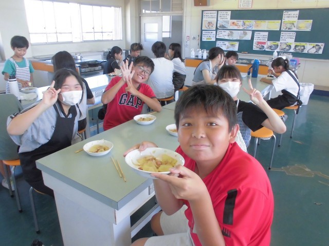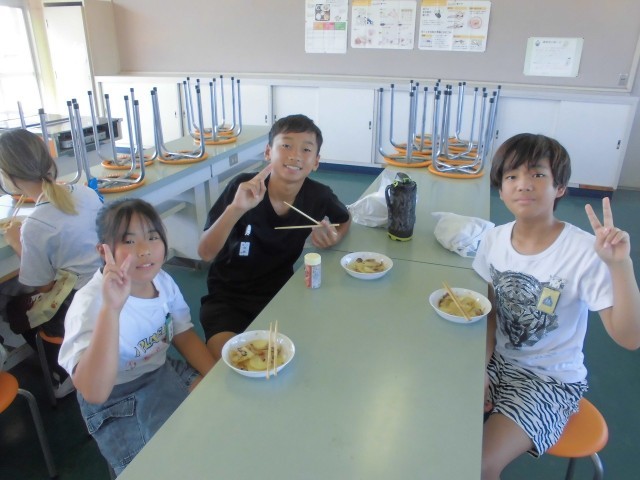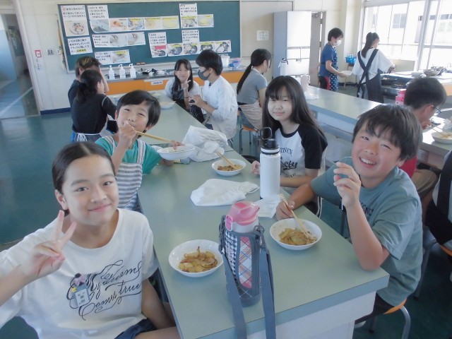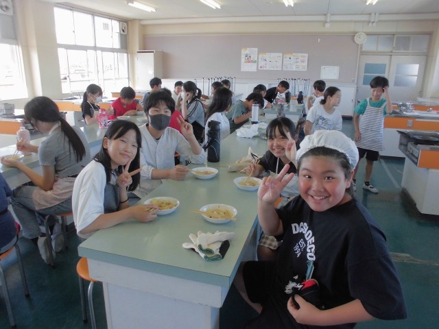 今日は、2組の生徒たちが家庭科の調理実習で「ベーコンポテト」を作りました。班ごとにアイデアを出し合い、協力して調理を進める姿が印象的でした。おいしく仕上がった料理は、みんなの努力の成果です。完成後には、全員でおいしくいただき、充実した実習となりました。ごちそうさまでした。