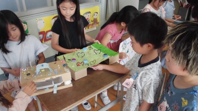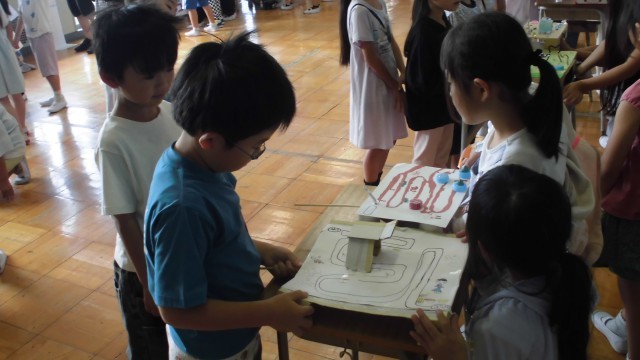 本日、3時間目におもちゃ祭りがありました。1年生は2年生がつくってくれたおもちゃに興味津々で楽しく、ルールを守って遊ぶことができました。