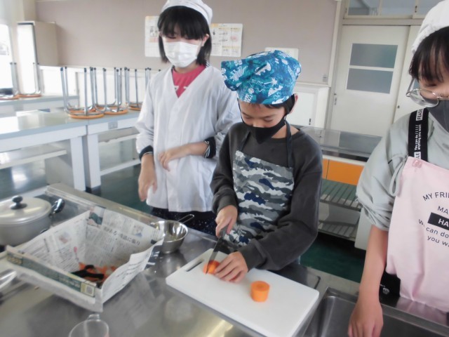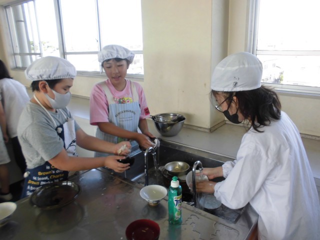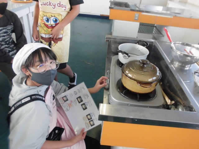 今日は2組が調理実習に挑戦しました。ごはんを炊く係では、最後に10分間蒸らす時間があったのですが、「待ちきれない~~!」と炊き上がりを今か今かと心待ちにしていました。また、調理や片づけを進めながら「家の人って毎日こんなに大変なんだ。」と声をもらす児童もいました。