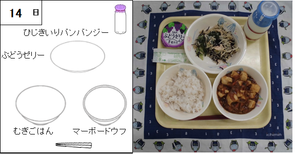 今日 の「ひじき入 りバンバンジー」は、バンバンジーサラダにひじきを入 れて、食物繊維 の量 が増 えるように工夫 をしました。
