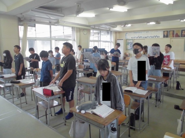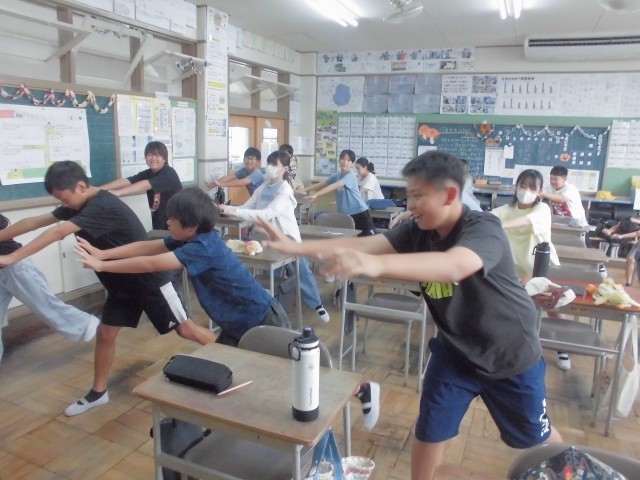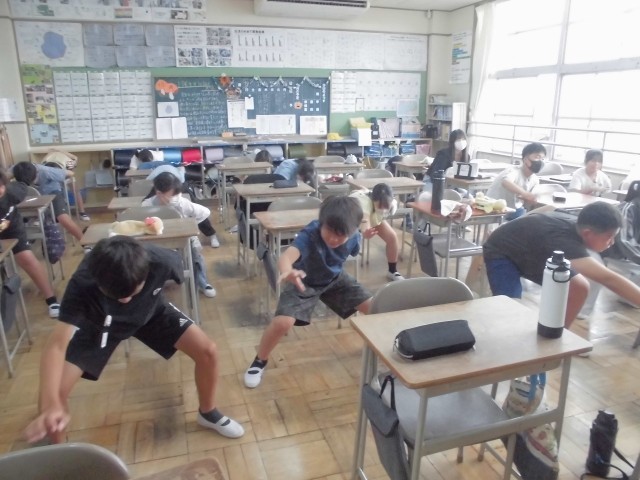 この日も子どもたちはさまざまな活動に取り組みました。まず、スキルタイムでは運動会に向けてソーラン節の練習を行い、その後、音楽の時間ではみんなで歌の練習をしました。英語の時間ではユニット4の学習に取り組み、最後に国語の時間では「鳥獣戯画」を使ってパンフレットづくりを行いました。どの活動も充実した内容で、子どもたちは楽しく学んでいました。