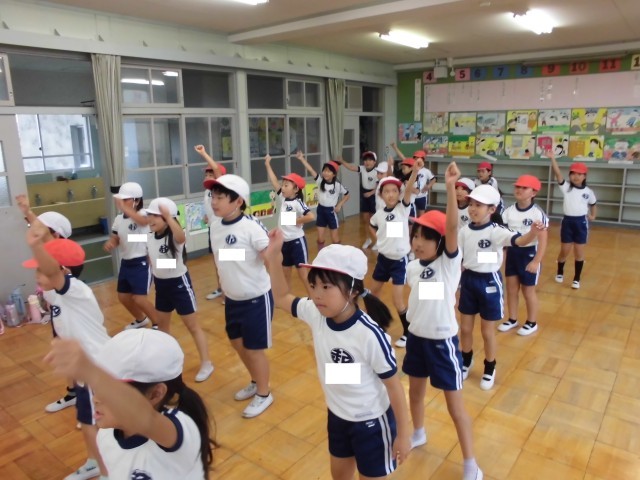 運動会の練習が始まりました。テーマは「笑顔でポーズ」です。初めての学年練習でしたが、みんな張り切って意欲的に踊ることができました。
