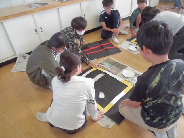総合の時間には、運動会に向けて法被づくりをしました。一人ひとりが思いを込めて仕上げた法被はとてもかっこよく仕上がりました。この法被を身にまとい、本番の運動会では力いっぱい頑張ってほしいと思います。