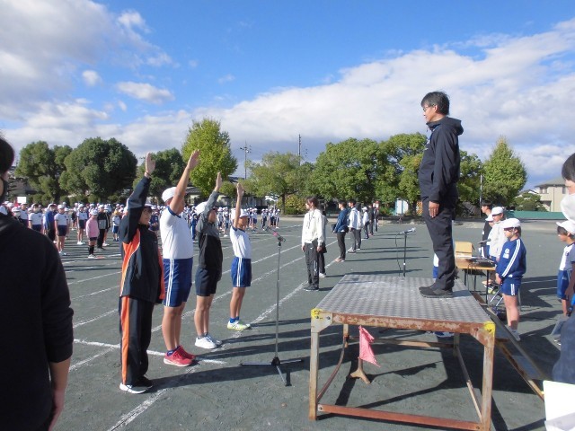 開会式の練習: 練習では、開会式の流れを一つひとつ丁寧に確認しました。児童たちは自分の役割をしっかりと理解し、本番に向けて規律ある行動と集団での協力を学んでいます。