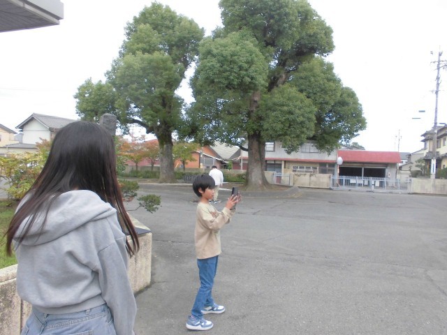 また別の算数の時間では、比とその利用の知識を応用しました。学校敷地内のくすの木や国旗掲揚塔を対象に、比の考え方を用いて、その実際の高さを計算で求めました。教室で学んだ知識を実世界の課題解決に結びつける、探究的な学びとなりました。国語:新出漢字の学習
