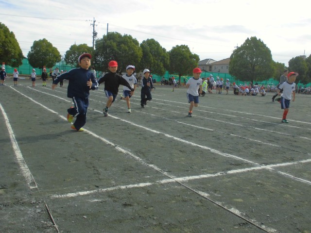 起小学校に入学して初めての運動会、1年生は全員元気に参加することができました。
