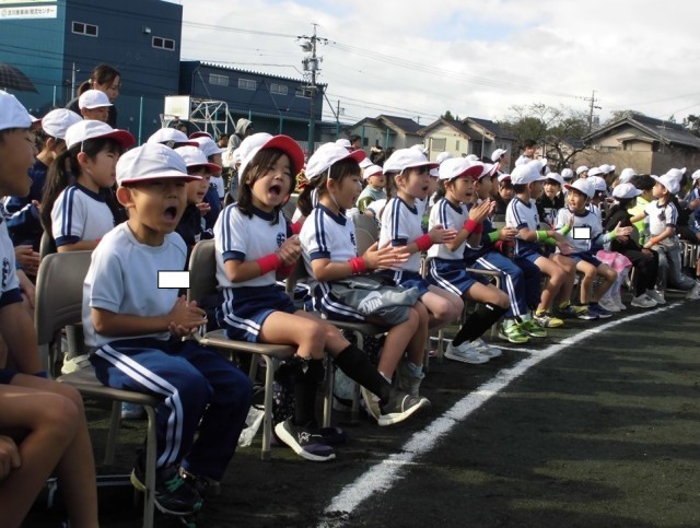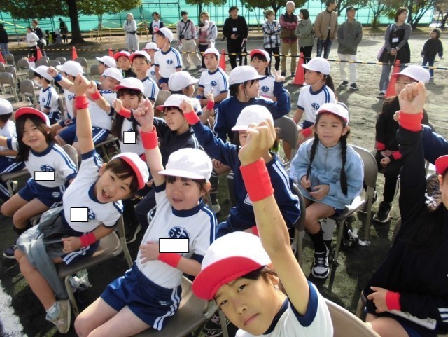 競技以外では、他の学年の応援をしました。5・6年生の代表委員の先導を受けて、大きな声で応援をすることができました。