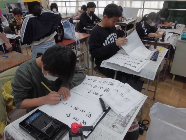 習字の時間では、松尾芭蕉の俳句を題材に、丁寧に筆を運びました。静かな雰囲気の中で、一画一画に気持ちを込めて書く姿が印象的でした。