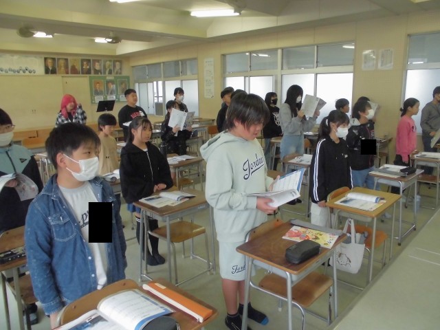 本日の音楽の時間は、「われは海の子」のテストを行いました。これまで練習してきた成果を発揮しようと、どの子も一生懸命に歌っていました。英語の時間は、ユニット5の学習を進めました。新しい表現や会話文に挑戦しながら、友達とペアになって楽しく練習する姿が見られました。体育の時間は、ハードル走の学習を行いました。リズムよくハードルを越えるために、タイミングやフォームを意識して取り組みました。