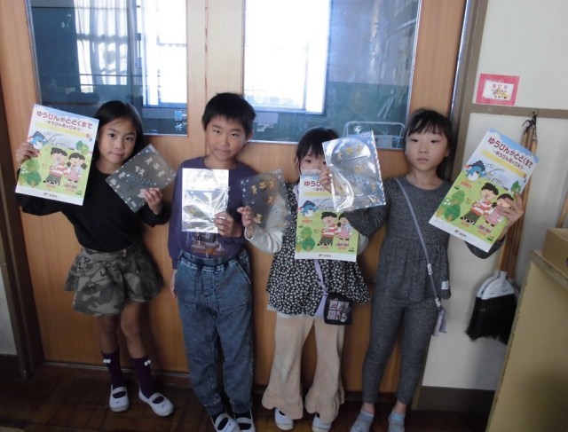 本日起郵便局より冊子や定規などを頂きました。保護者の皆様には、ぜひ家の方で見て頂き、町探検のお話を聞いていただければと思います。