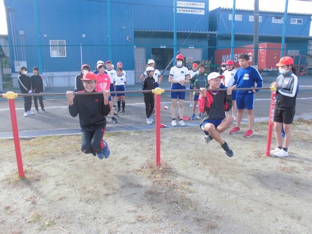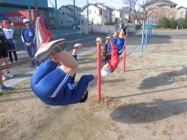 鉄棒の学習を行いました。鉄棒に慣れ親しむ活動からスタートしました。