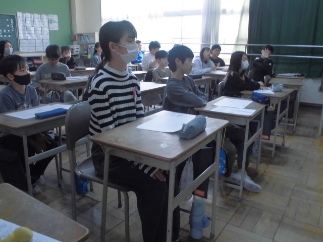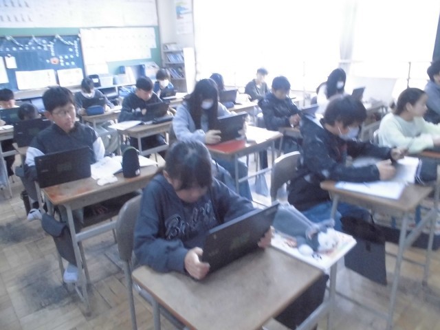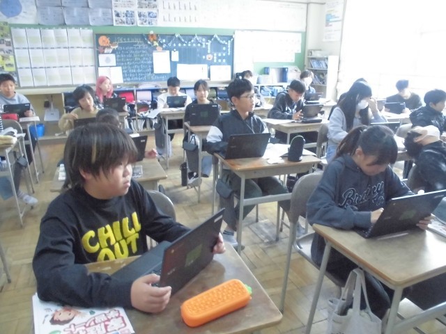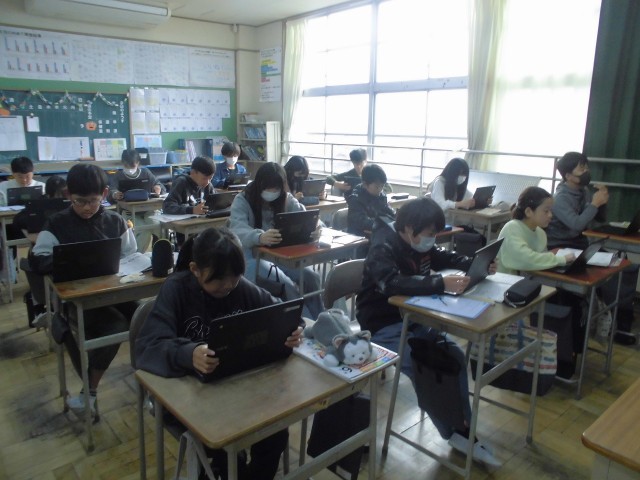 今日は家庭科の学習を行いました。授業の最後には、カフートというオンラインツールを使って復習問題に取り組み、これまで学んだ内容を確認しました。来週は、2学期のまとめテストがありますので、今週の復習をしっかりと行い、試験に向けて自分の力を最大限に発揮できるようにしてほしいと思います。
