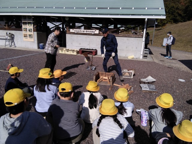 野外炊飯を行いました。グループで協力してカレー作り。ごはん係、かまど係、カレー係に分かれ、施設の方に教えていただきながら挑戦しました。
