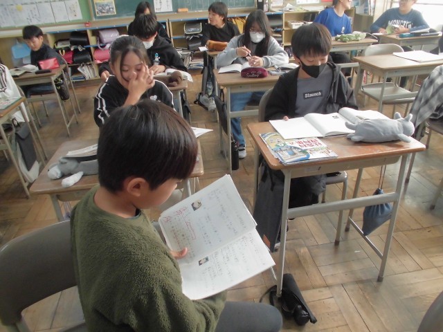 音楽の時間はテストを実施しました。担任としては、点数の良し悪しよりも、そこに至るまでの取り組み方を大切にしたいと考えています。「頑張ってよかった」と児童自身が感じられる経験こそ、次への意欲につながります。ぜひご家庭でもテストについて話題にしていただき、お子さんの努力を認め、励ましていただけたら嬉しく思います。