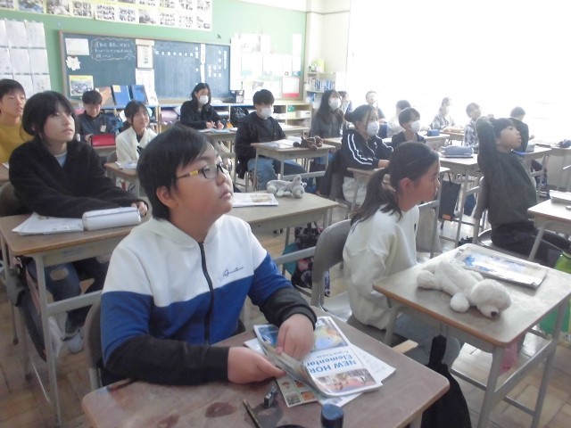 新しい表現や語彙を使って、友だちと簡単なやり取りをする活動にも取り組みました。少しずつ英語で伝えようとする姿が増え、学習の積み重ねが感じられる時間となりました。
