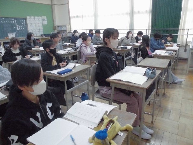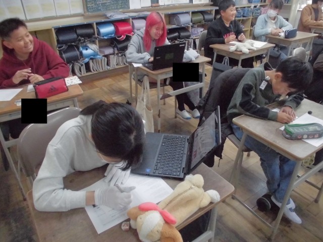 書写の時間には、地域の独居老人に向けた年賀状を書きました。温かい言葉で感謝の気持ちや新年の挨拶を綴り、手紙を通じて孤独感を少しでも和らげられることを願いながら、一人ひとりが心を込めて年賀状を書きました。