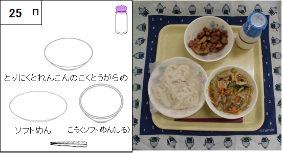 れんこんは、ハスの地下にあるくきです。 地下にできたくきが栄養を蓄えて大きくなった野菜です。日本で本格的に栽培されるようになったのは、明治時代です。れんこんの穴は空気が通る穴の役目をしていて、地上の葉から酸素を取り入れて、穴を通して根まで届けています。れんこんを食べているのは、中国と日本などわずかな国といわれています。かみごたえがよいのが特徴の1つです。よくかんでゆっくり食べましょう。今日は、黒砂糖の味付けです。