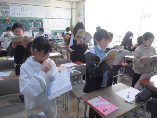 国語の授業では、宮沢賢治の傑作『やまなし』を題材に、作品を深く読み解く活動を行いました。