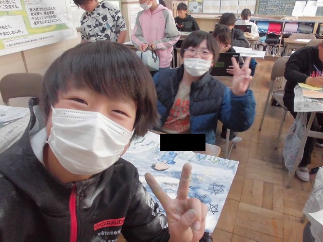タブレットを使うことで、作品の細部までじっくりと見ることができ、友達の感想や表現の工夫について熱心に話し合う姿が見られました。デジタルツールを活用した、新しい形の美術鑑賞となりました。