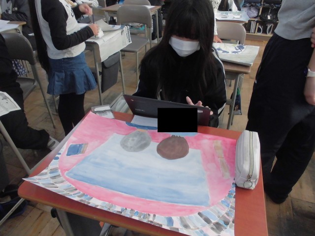 制作の後は、完成した作品をタブレットで撮影し、クラス全員で鑑賞会を行いました。
