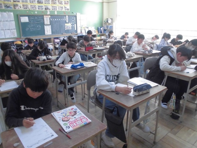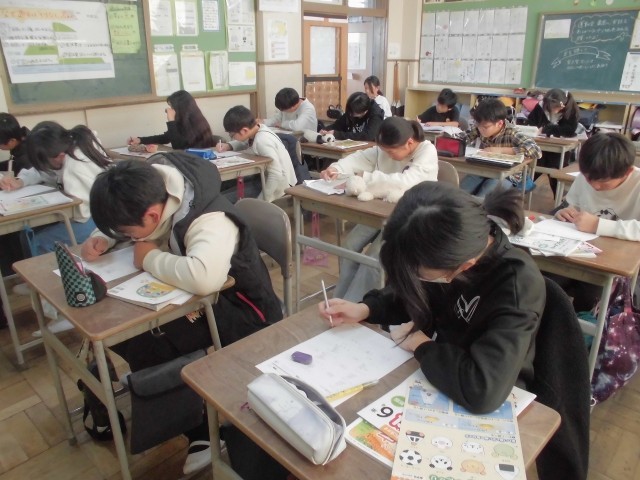 6時間目は、来週に迫った学力テストに向けた復習問題に取り組みました。