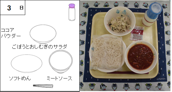今日は、「ソフト麺」について紹介します。ソフト麺は、昭和30年代から始まった給食のメニューです。子どもたちが食べやすく、栄養がとれるようにと考えられたそうです。ソフト麺は、スープを吸いやすいので麺に味がしっかりしみこみ、最後までおいしく食べられます。きっと、みなさんのおうちの人も子どものころに食べたことがあると思います。その時はどんな味だったか、ぜひ聞いてみてください。