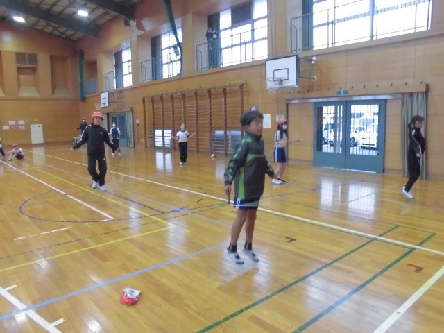 体育の授業では、リズム縄跳びに取り組んでいます。