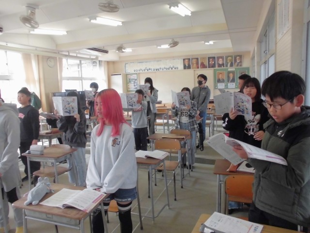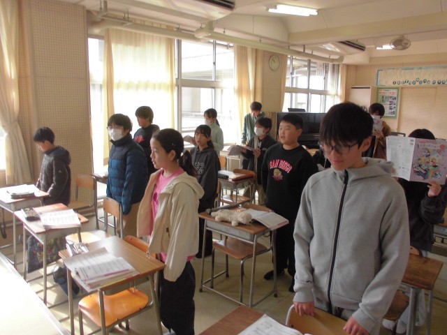 音楽の時間は、2学期最後の授業となりました。この学期に練習してきた歌や合唱曲を、皆で心を込めて歌い上げました。児童たちは、全員で声を合わせることの喜びと、ハーモニーの美しさを改めて感じていたようです。一つの曲をみんなで作り上げる達成感は、何物にも代えがたい経験です。来学期も、美しい音楽との出会いを楽しみにしてほしいと思います。