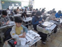 既成概念にとらわれず、独自の表現を追求し続けた棟方さんの生き方から、自分の心の声に従い、情熱を持って物事に取り組むことの大切さを学びました。児童たちは、「困難があっても諦めずにやり抜く強さ」について深く考え、その考えを真剣に書き留めていました。