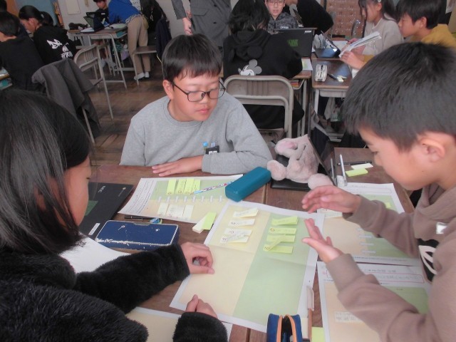 児童たちは、物語の情景描写を丁寧に読み込み、賢治がこの二つの世界を通して伝えたかった奥深いメッセージを、友達と意見交換しながら探求しました。