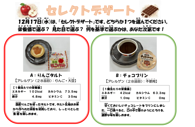 明日の給食は何かな? ↙↙  セレクトデザート♡!お楽しみに~!!