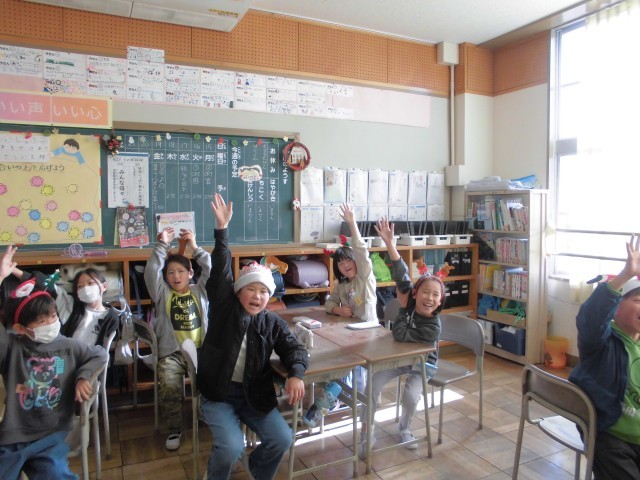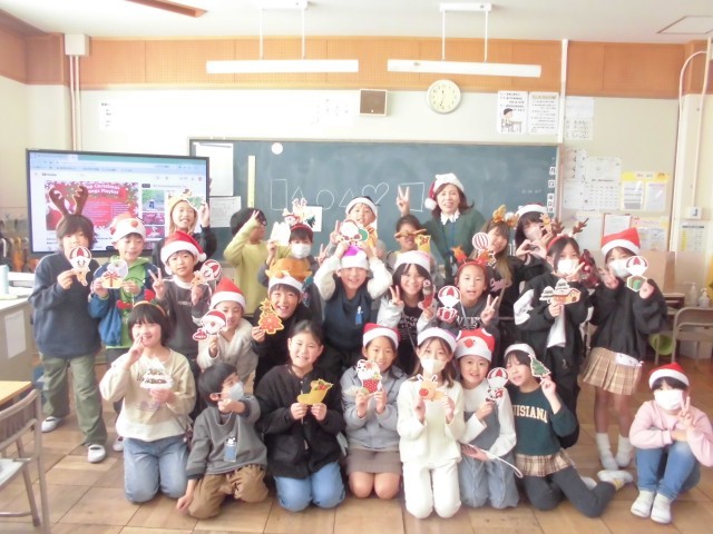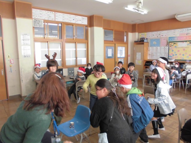 2学期最後の英語は、ちょっぴり早いクリスマス会。楽しいゲームで盛り上がりました。