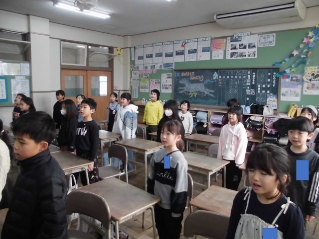 今日から3学期が始まりました。2年生の子どもたちは、2クラスとも体調不良の児童もなく、元気に登校することができました。今日は、終業式をオンラインで取り組み、その後は冬休みの宿題を出したり、冬休みの思い出を話したりして過ごしました。