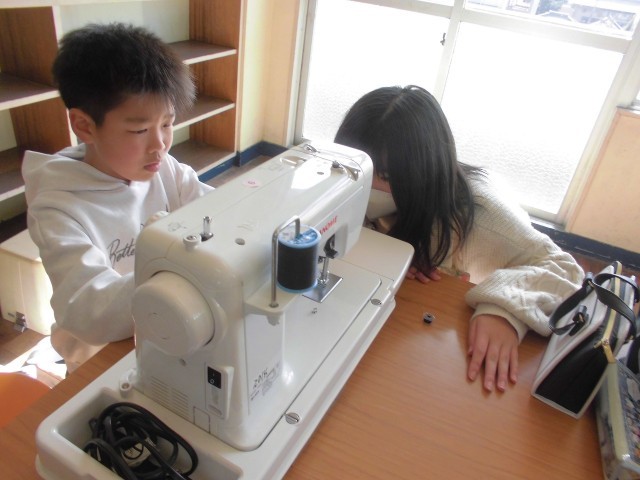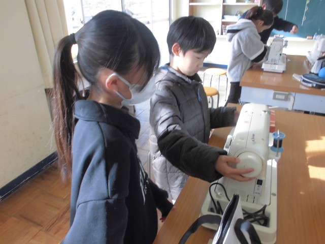 家庭科の時間には、新しく始まる製作に向けてミシンの使い方の確認を行いました。
