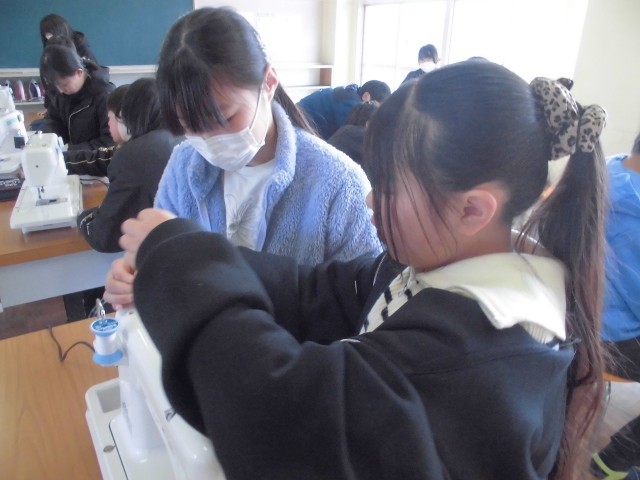 家庭科:真剣な眼差しで「ミシン」に挑戦