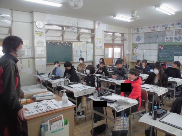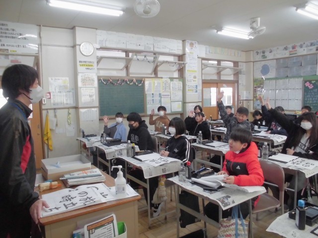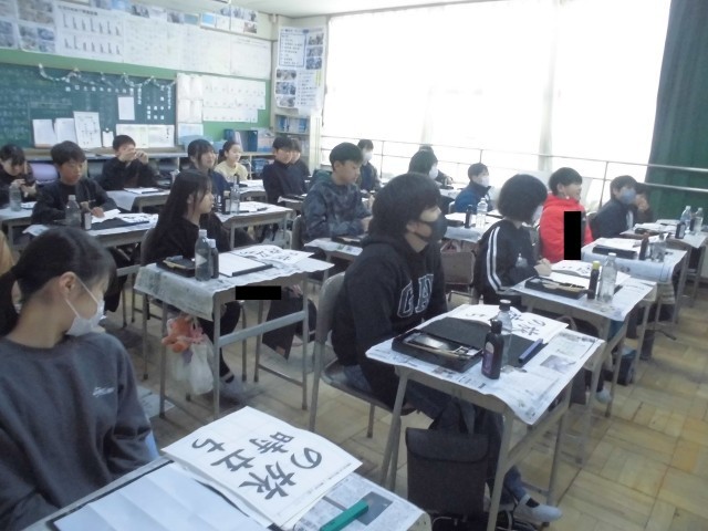 今日の書写の時間は、教務先生に指導していただきました。授業の中では、昨日行われた中学校説明会についても話題にのぼりました。
