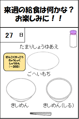 今日の「ピリ辛トックスープ」には、キムチが使ってあります。キムチは隣の国・韓国で生まれた漬物です。白菜などの野菜を唐辛子やニンニクと一緒に漬け込んで作ります。唐辛子の成分には、体を芯から温めてくれる働きがあります。また、発酵して作られるので、お腹の健康を守る乳酸菌などの体に良い菌もたくさん入っています。残さず食べて、体の中からポカポカになりましょう。