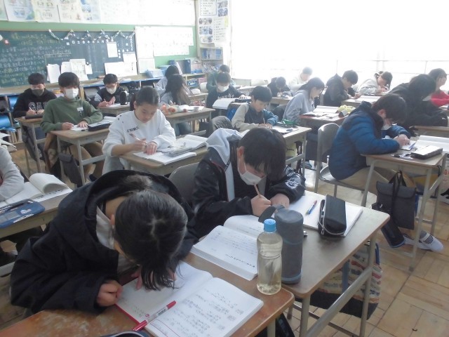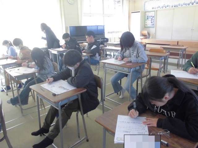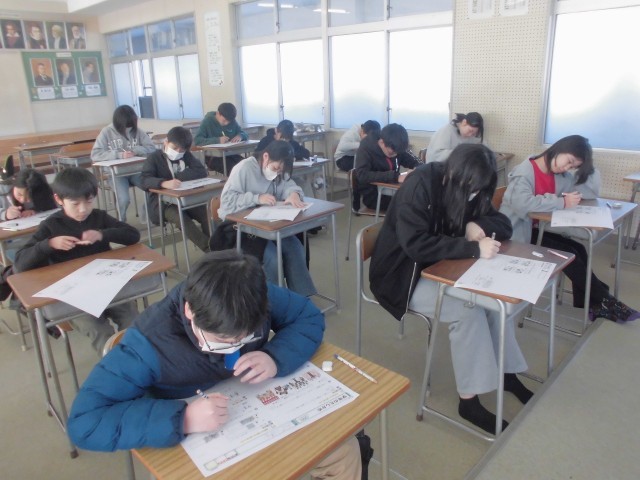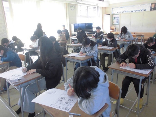 記号の意味や曲の構成など、授業で学んだ知識をしっかりとアウトプット。静まり返った教室に、真剣に答案を書く鉛筆の音だけが響いていました。
