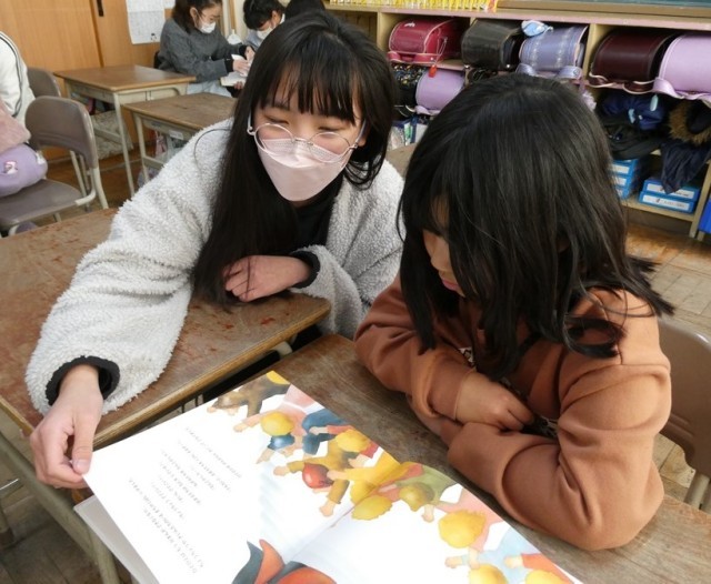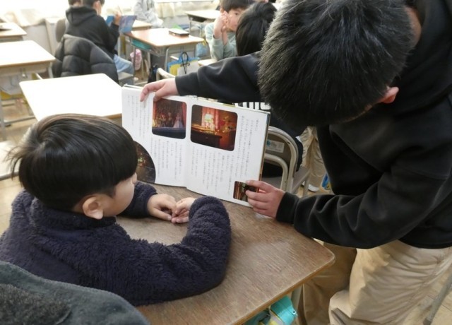 この日のために5年生の児童が2年生のために読む練習をしてくれました。今日は、優しく、丁寧に読んでくれました。また、読み終わると、本についてクイズを出してくれたり、お話をしてくれたりととても優しく話しかけてくれました。