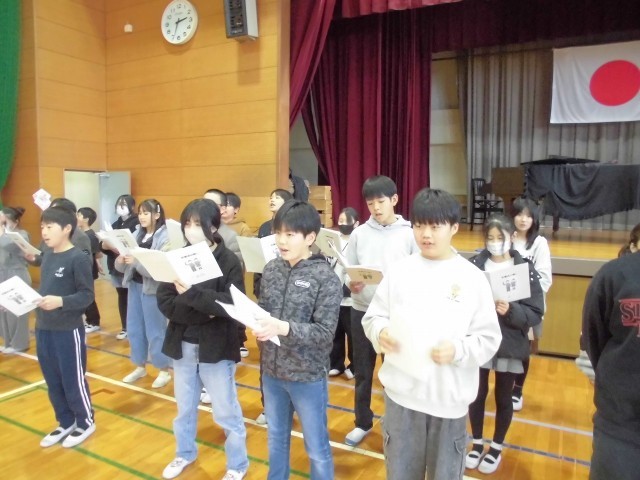 いよいよ「卒業を祝う会」に向けた練習の2回目を行いました。今日は、合唱曲『友 ~旅立ちの日に~』の冒頭部分を重点的に練習しました。曲の始まりは、聴く人の心に想いを届ける大切な一歩です。言葉のひとつひとつを丁寧に噛みしめ、これまでの感謝と未来への希望を声に乗せようとする子供たちの真剣な眼差しが印象的でした。本番に向けて、みんなで心をひとつに、美しいハーモニーを創り上げていきます。