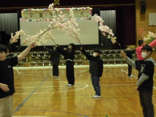 今日は卒業を祝う会でした。この日に向けて、出し物の練習やスライド作り、飾り作りなど、みんなで協力して取り組んできました。