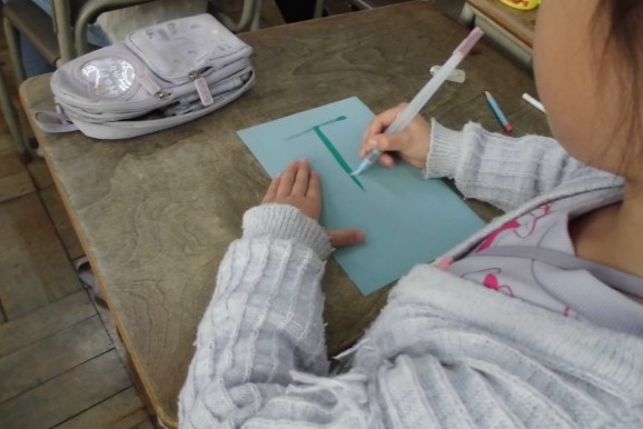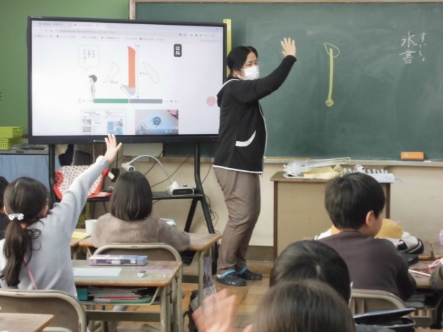 本年度、最後の書写の授業がありました。3年生の毛筆前に、水書の体験をしました。「楽しい!」と夢中で書きながら、3年生へのわくわくを広げてました。