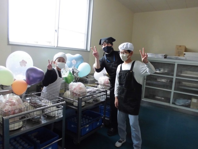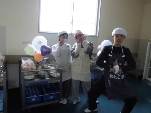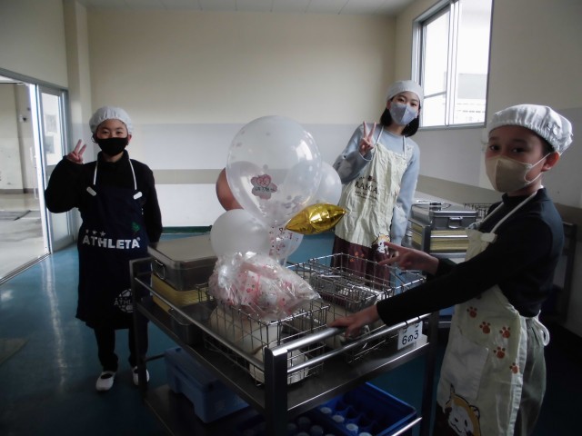 ワゴンを運ぶ途中も、5年生や2年生から、「いいな~」「卒業おめでとう!」と声をかけられて、小学校最後の給食が華やかな時間となりました。