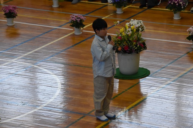 保護者の皆様に温かく見守られ、ちょっぴり緊張しながらも、笑顔で入場した新1年生。式中の「1年生紹介」では、一人一人の元気な「はいっ!」という返事が響き渡り、とてもすてきでした。