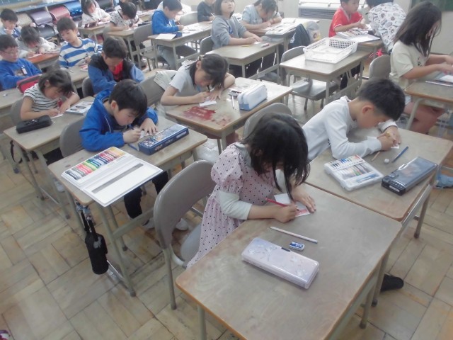 避難訓練では、自分の身は自分で守れるように「わたしたちの安全」でふりかえりを行いました。訓練中も真剣に行う姿が見られ、さすがです。図工の授業では、春について小さなカードに絵を描きました。さくら、つくし、お花見団子など、春らしい言葉をたくさんイメージして描くことができました。