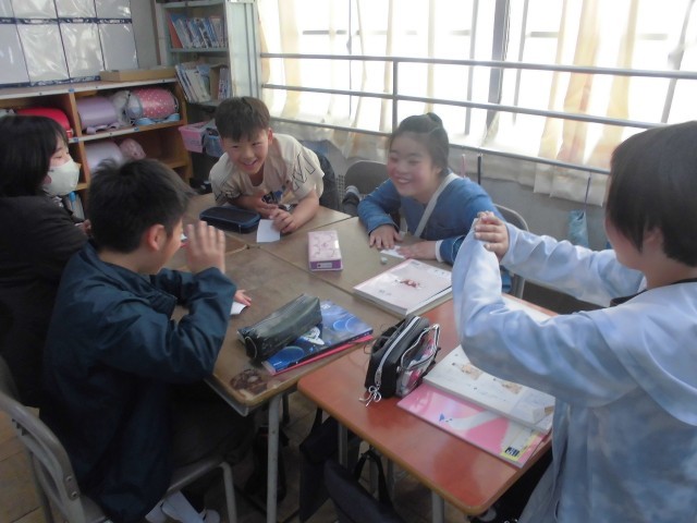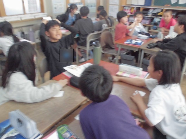 国語の時間に取り組んだのは「ひみつの言葉を引き出そう」の学習です。カードで引いた特定の単語を、相手に自然と言わせるために会話を組み立てます。 「どう質問すれば、あの言葉が出てくるかな?」と、相手の反応を予測しながら言葉を選び、場を盛り上げる子供たち。答えが引き出せた瞬間の「やった!」という笑顔からは、対話を通したコミュニケーションの楽しさが溢れていました。