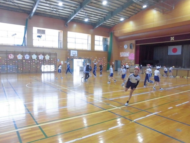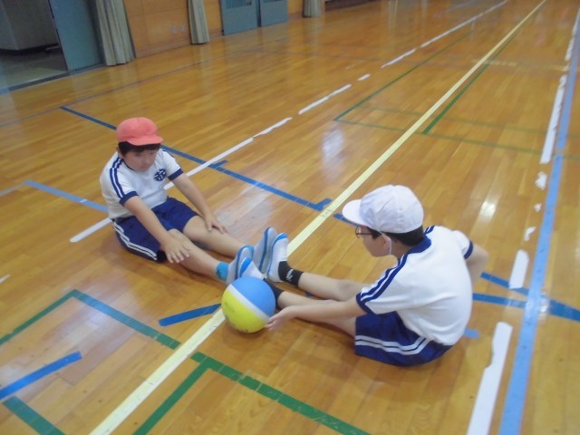 体育の時間には、ボールを使った活動を中心に行いました。ボールを使いながら全身をほぐすストレッチから始まり、走りながら正確に投げる「ランアンドスロー」に挑戦。投力と走力を組み合わせた動きに、みんな真剣に取り組んでいました。